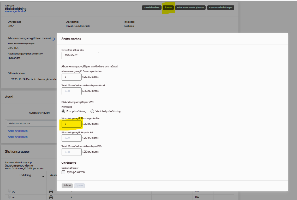 As an administrator you can, at any time change your kWh-price for your zones.