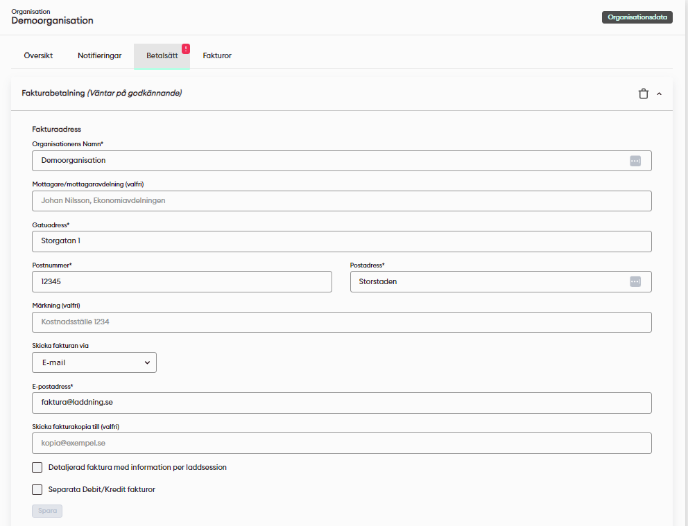 Ändra fakturauppgifter