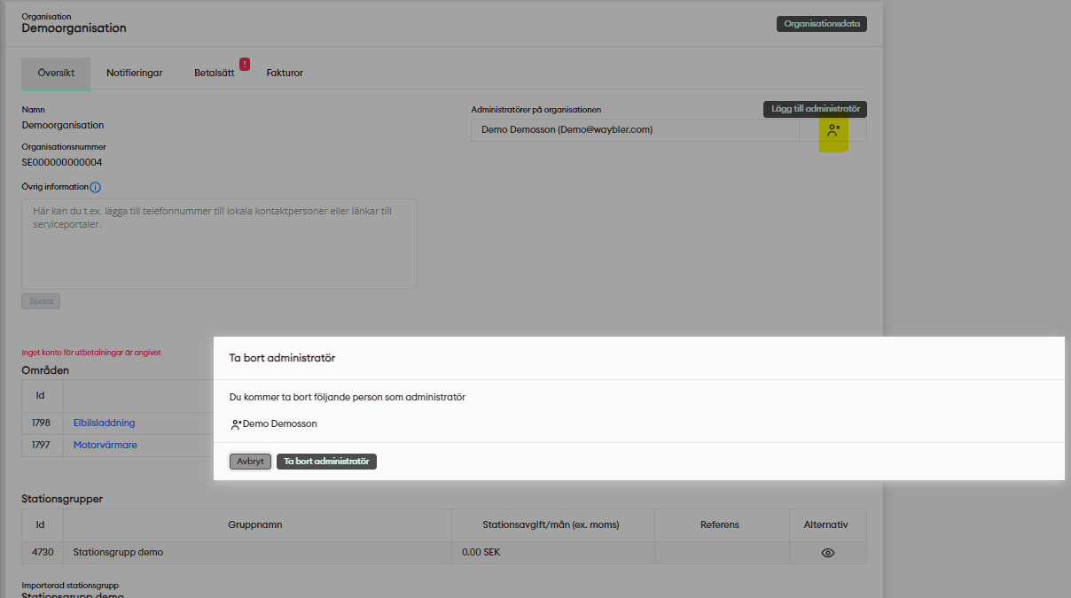 Leta upp listan på era administratörer i övre höger fält på sidan.